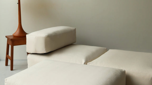 De Lounge Pillow is armleuning, kussen en loungepartner in één. Gebruik ’m als zijmodule, scheiding tussen sofa’s of gewoon op de grond – dankzij de antislip bodem blijft hij precies liggen waar jij ’m wilt.